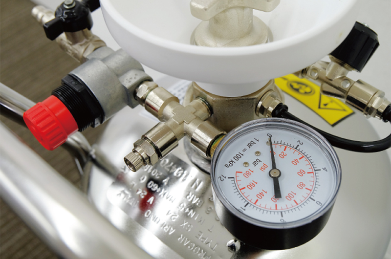 エアー配管やコンプレッサーと接続することで、きめ細かいムース状の泡を効率良く広範囲に散布することができます。